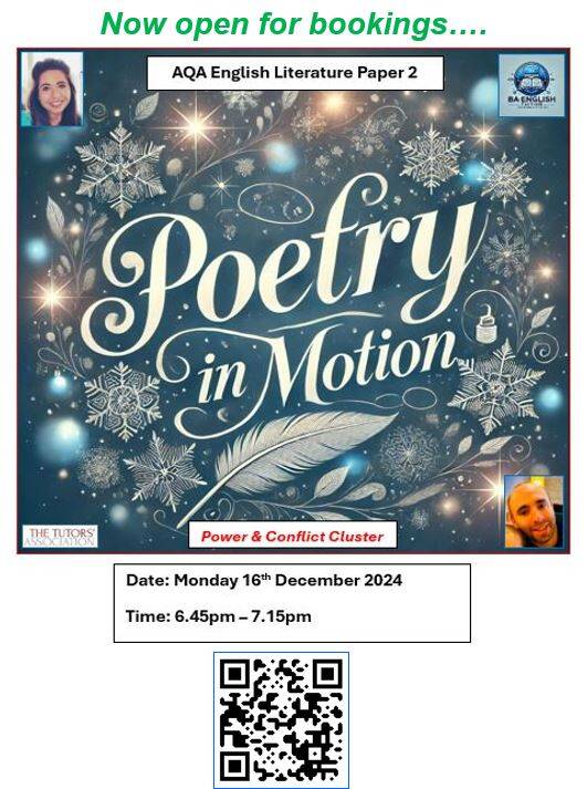 Tickets are now live for our final webinar of the year, Poetry in Motion, for just £12.99! This session will break down the GCSE English Literature Poetry section into bite-sized, manageable chunks and provide a ready-to-use template for comparing poems effectively. Start your poetry revision on the right note heading into 2025.